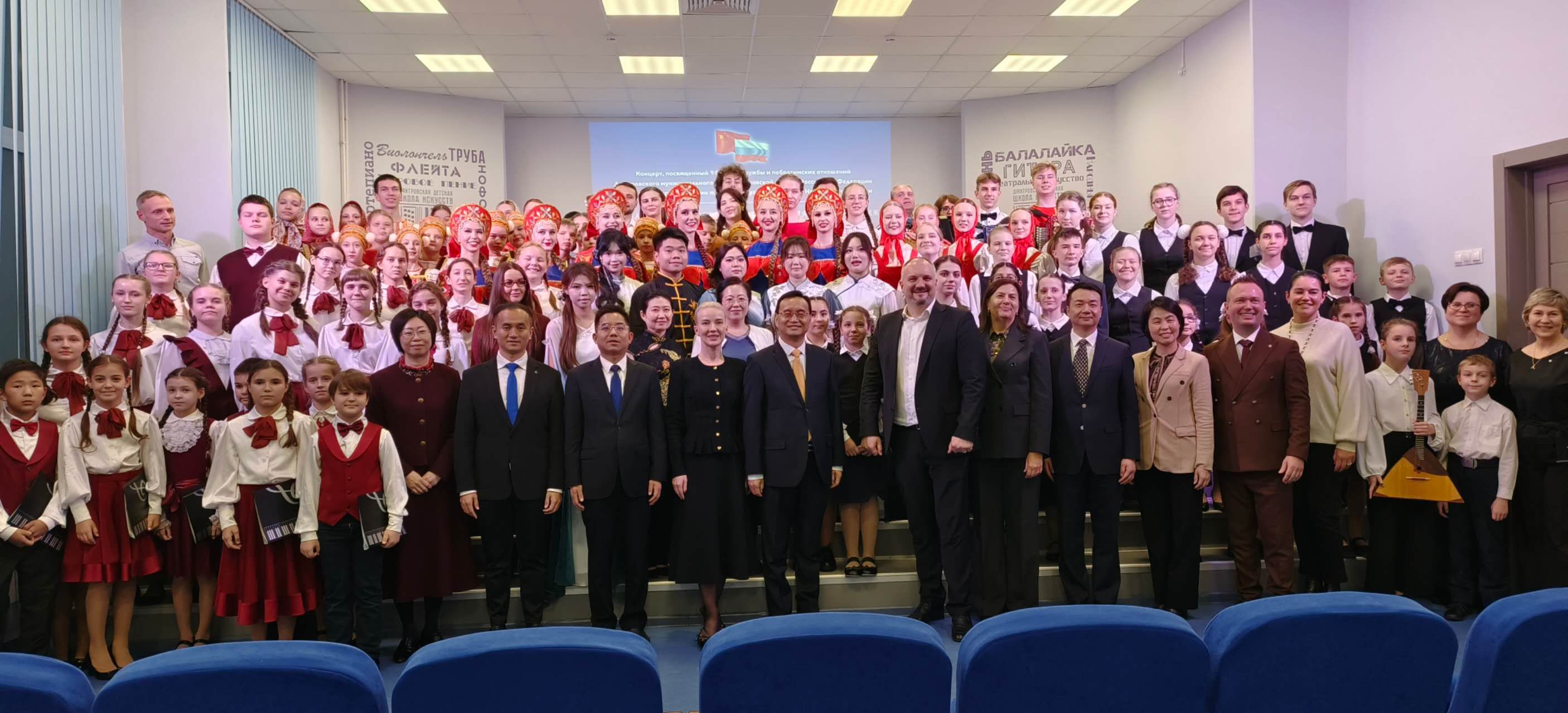 10月28日晚,“庆祝中华人民共和国广东肇庆与俄罗斯莫斯科州德米特罗夫斯克区缔交友好城市关系10周年”主题音乐会圆满举行,我院师生代表先后呈现《苏南小曲》《渭水情》《念奴娇·赤壁怀古》等作品,中俄学生同台合唱将氛围推向高潮,德米特罗夫儿童艺术学校合唱团带来的中文合唱版《万疆》更引发全场共鸣,肇庆市与当地政府官员现场观看并高度评价演出。